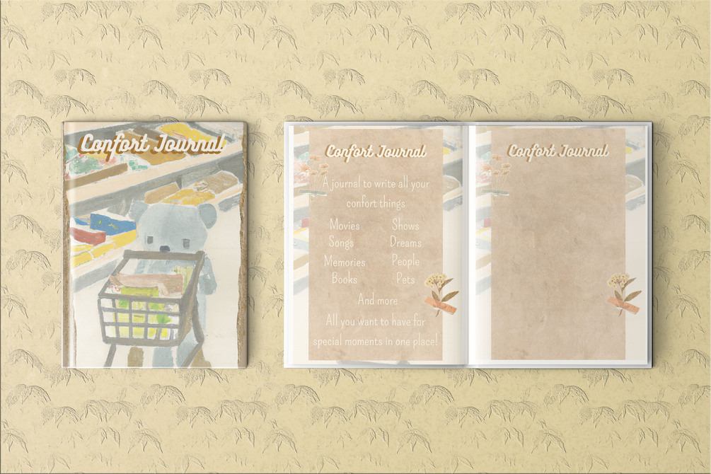 This journal is based on the feeling of comfort so you can have a special place to put everything you want to keep close here, could it be thoughts about a movie or show, maybe a specific quote from a book, or just a memory you would like to remember nicely.